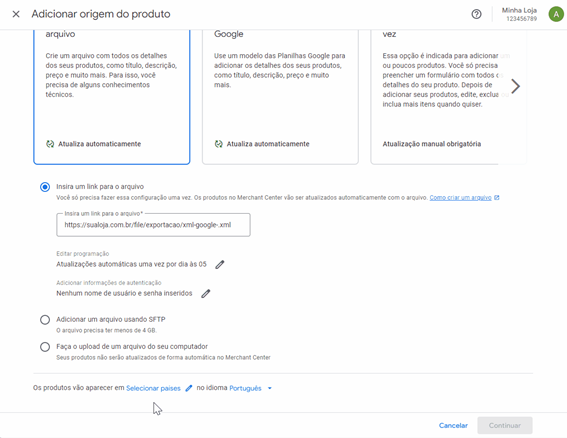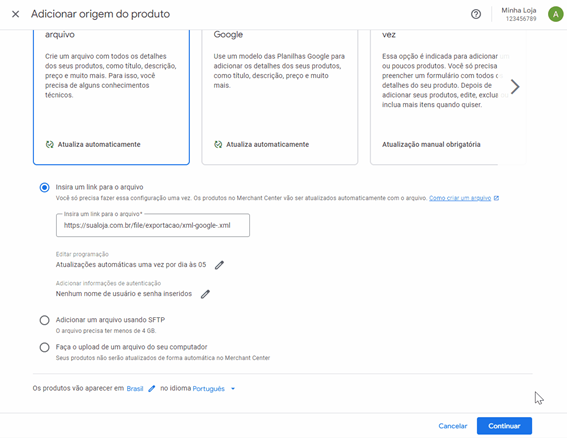 Essa configuração garante que o Google atualize seu feed diariamente com eventuais alterações de estoque ou preço.