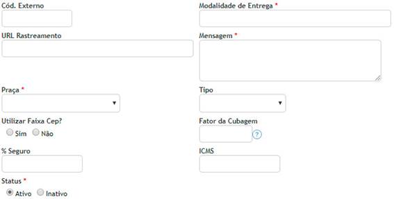 - Cód. Externo: código que identifica a modalidade de entrega no sistema.