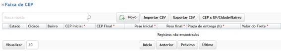 - Utiliza Faixa de CEP?: cada faixa de CEP representa um intervalo de uma região ou rua. Ao ativar essa opção, o site realizará entregas apenas para os CEPs configurados.