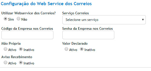 Se a modalidade de entrega utilizar o WebService dos Correios, configure conforme abaixo: